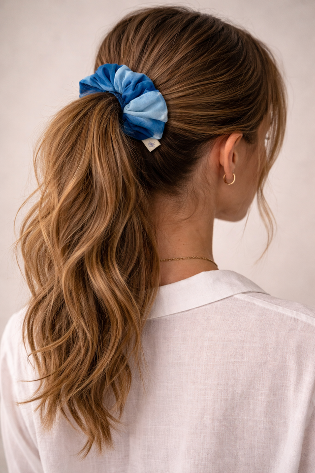 Accessoire teint à la main. Idéal pour attacher les cheveux ou à porter au poignet.