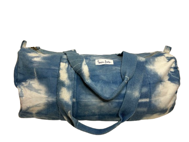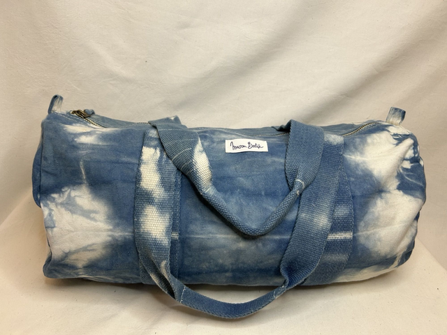 Sac week-end en coton 100%, teint à la main à l’indigo naturel.